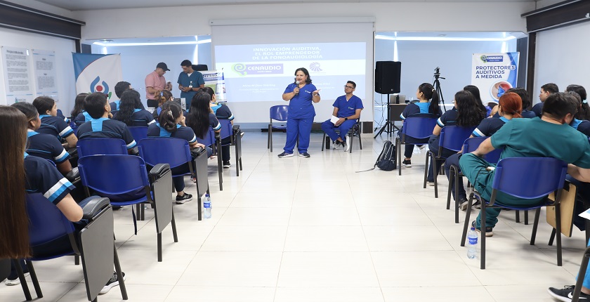 During the Speech-Language Pathology Reflection Circle, organized by the practicum coordinations, Juan Sebastián Cuenca, audiologist at IPS Audiosalud Integral in Bogotá, in collaboration with IPS Cenaudio in Neiva, shared meaningful experiences and innovative strategies aimed at developing sustainable projects in the field of hearing health. This activity enhanced students’ knowledge in their area of professional practice while encouraging the creation of entrepreneurial initiatives based on their academic training.