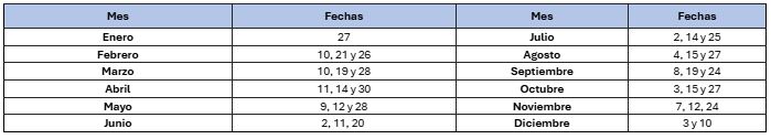 Dates 2026: