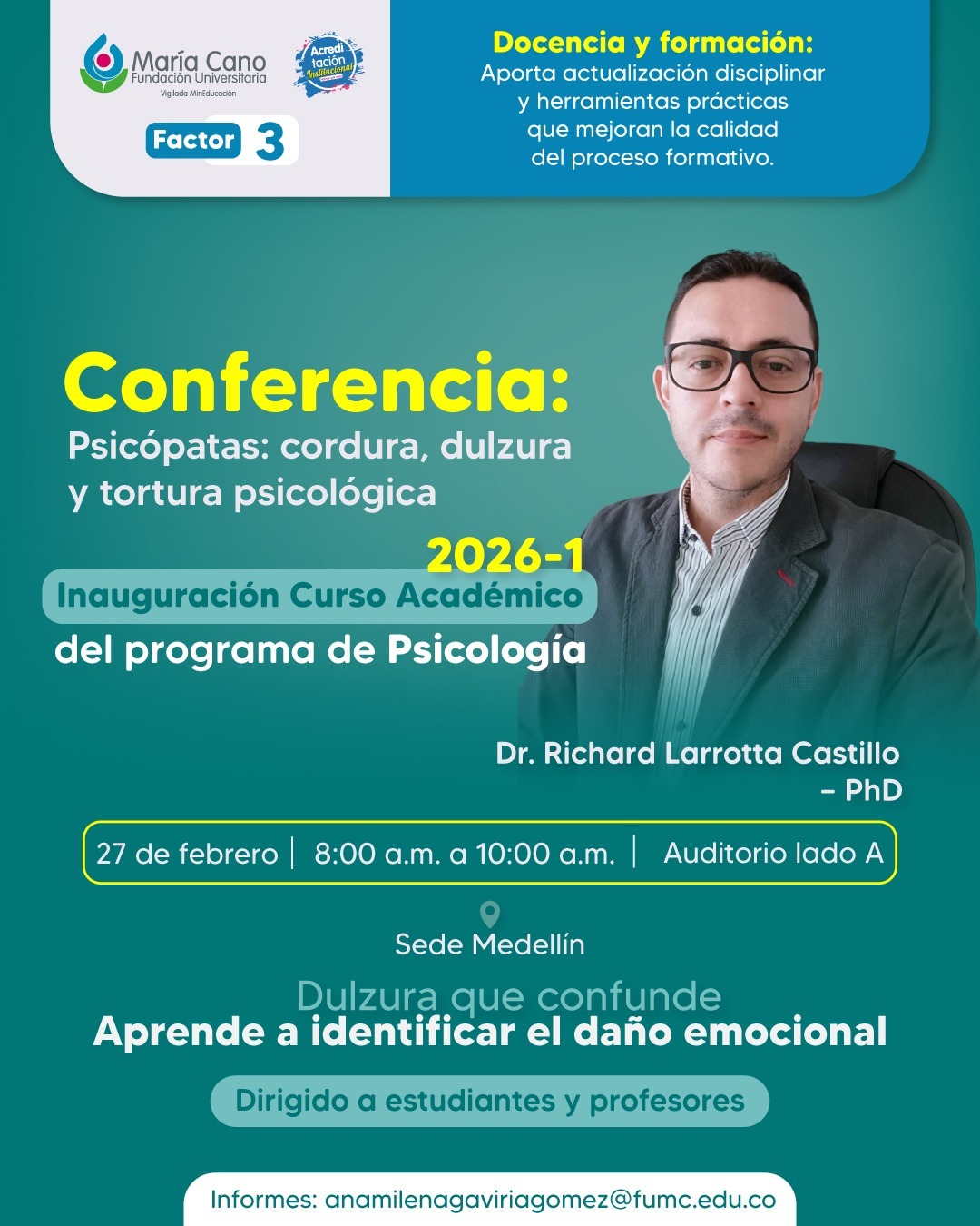 Conferencia: Psicópatas: cordura, dulzura y tortura psicológica
